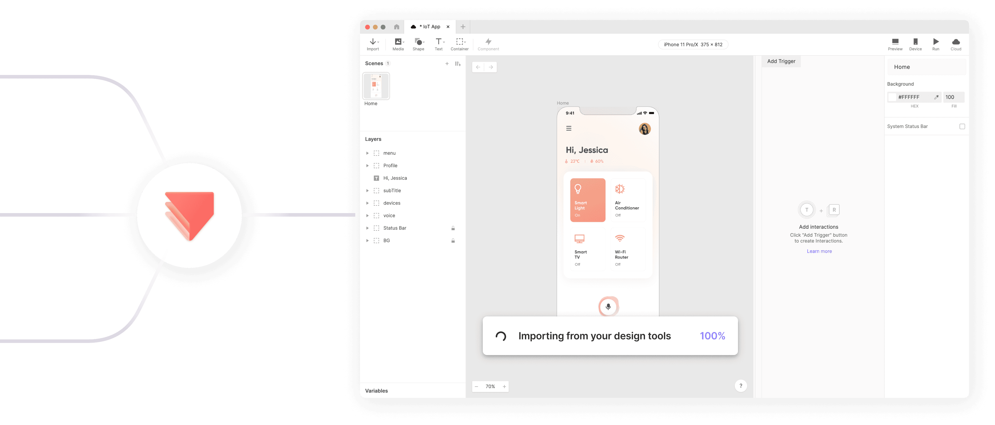Figma, Sketch, Adobe XD에서 작업한 디자인을 ProtoPie로 불러올 수 있습니다. 플러그인을 사용해 코딩 없이 쉽고 빠르게 임포트해보세요!
