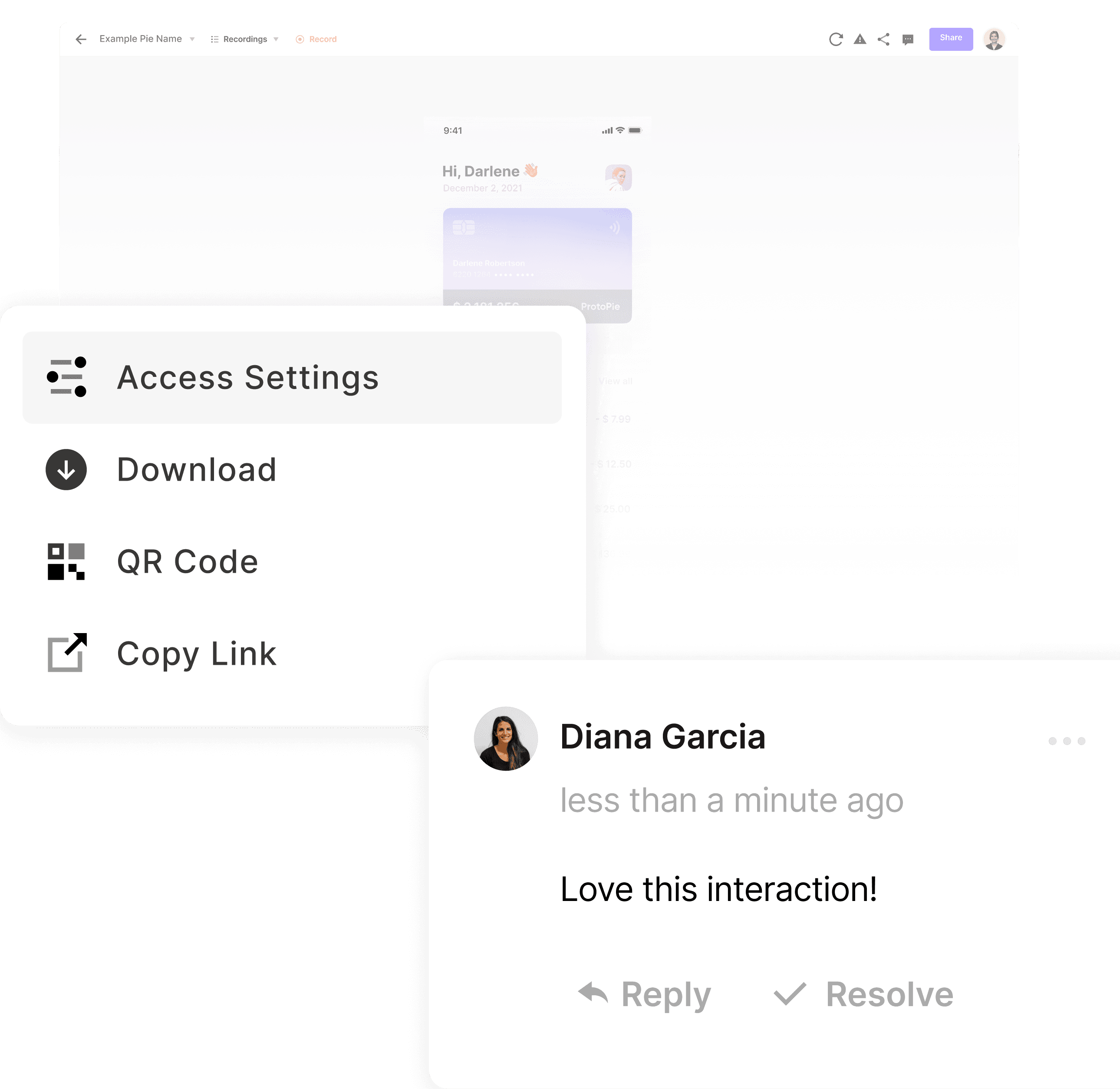 ProtoPie Cloud를 사용하면 작업한 디자인을 동료와 공유할 수 있습니다.