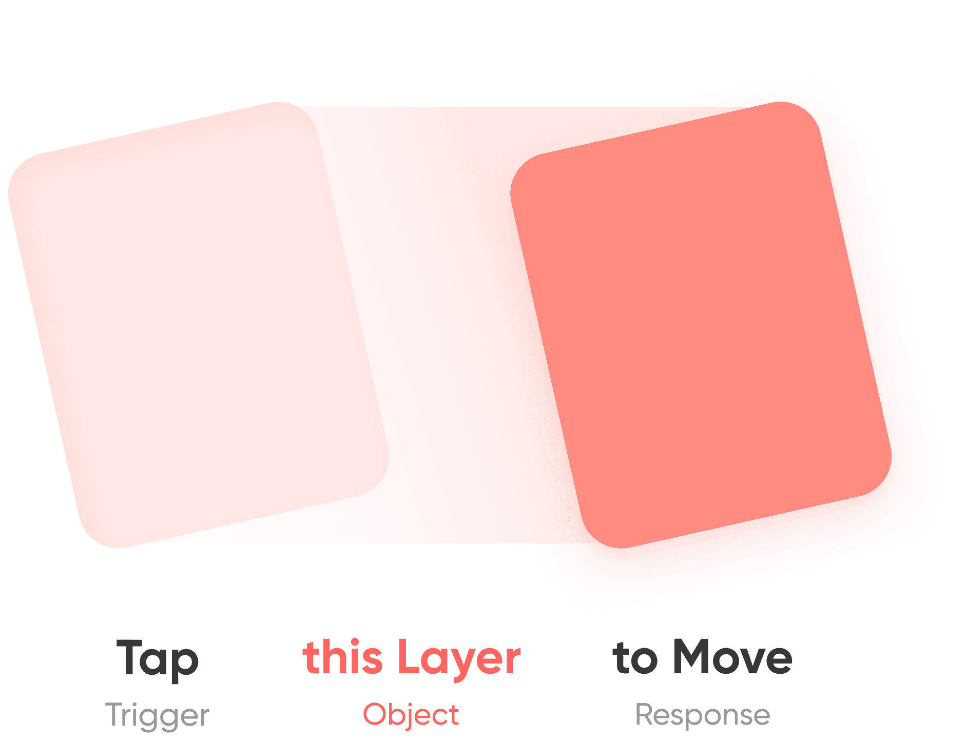 ProtoPie의 인터랙션은 트리거 / 오브젝트 / 리스폰스로 구성되어 있습니다. 이에 관한 더 자세한 사항은 아래 내용을 확인해주세요.
