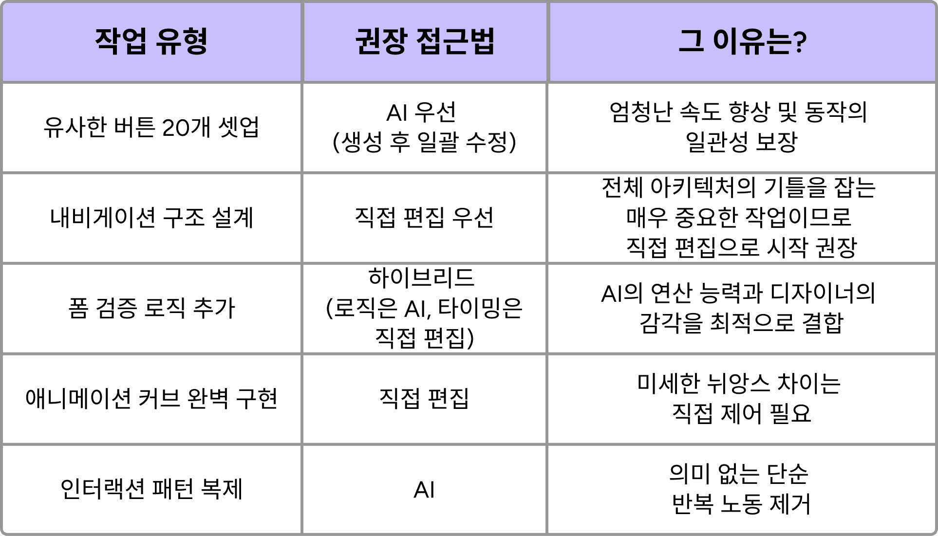 최상의 AI 프로토타이핑 워크플로우는 AI와 직접 편집, 둘 중 하나를 선택하는 것이 아니라, 둘 다 활용하는 방식입니다.