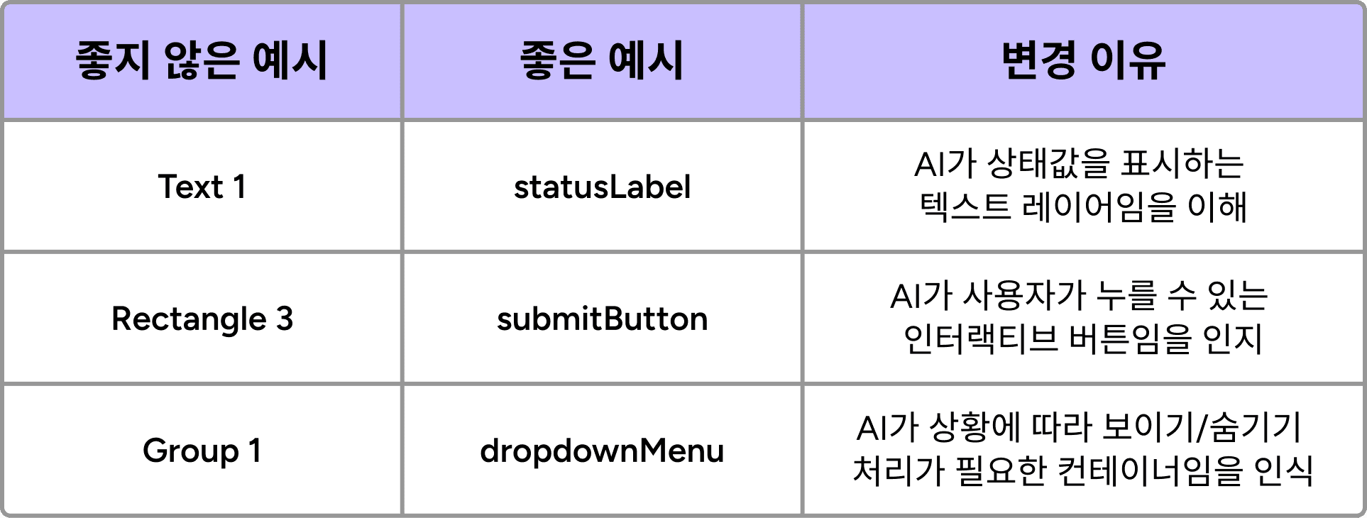 AI가 대상을 정확히 짚어낼 수 있도록 레이어에 명확한 이름을 부여하세요.