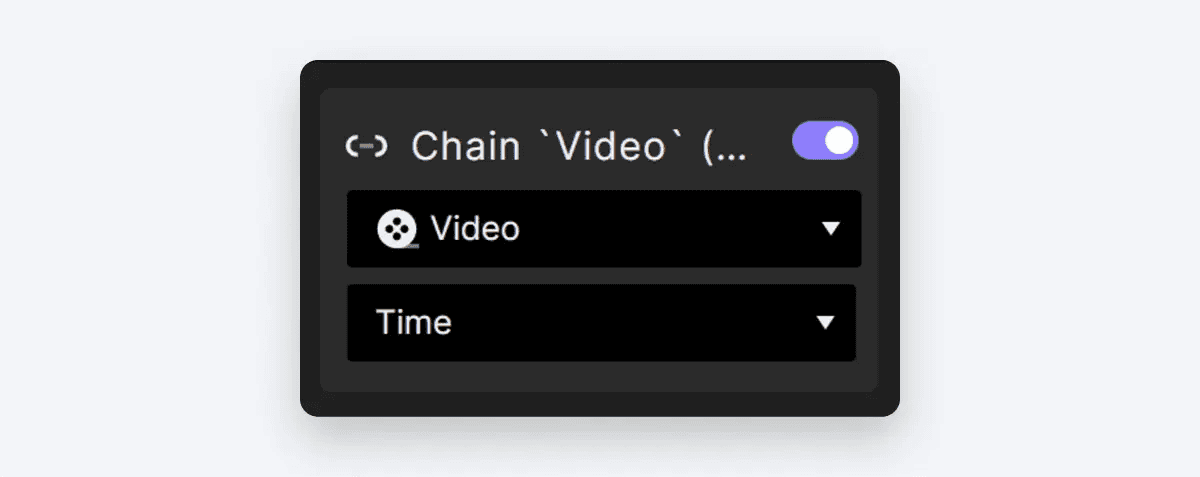 비디오의 시간을 진행 표시줄과 연결하려면 비디오 레이어에 Chain 트리거를 추가합니다. 트리거 속성의 경우 Time을 선택합니다.
