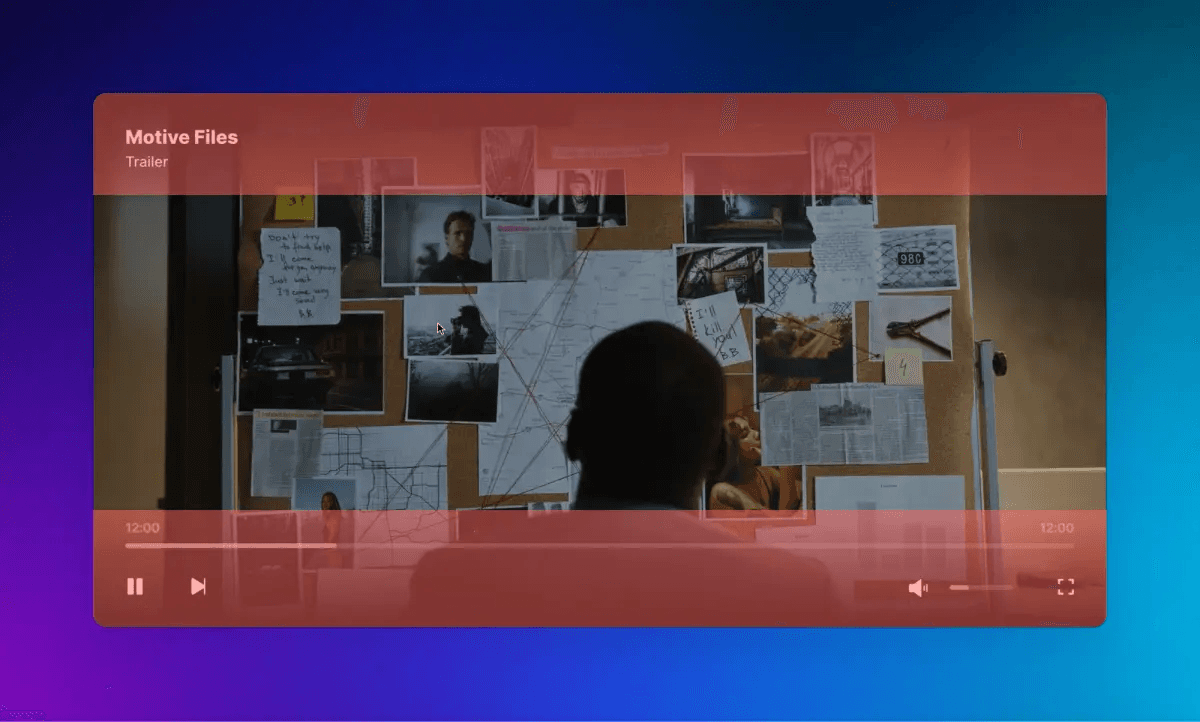 커서를 비디오 플레이어에서 멀리 옮기면 3초만 기다리면 오버레이가 사라집니다.