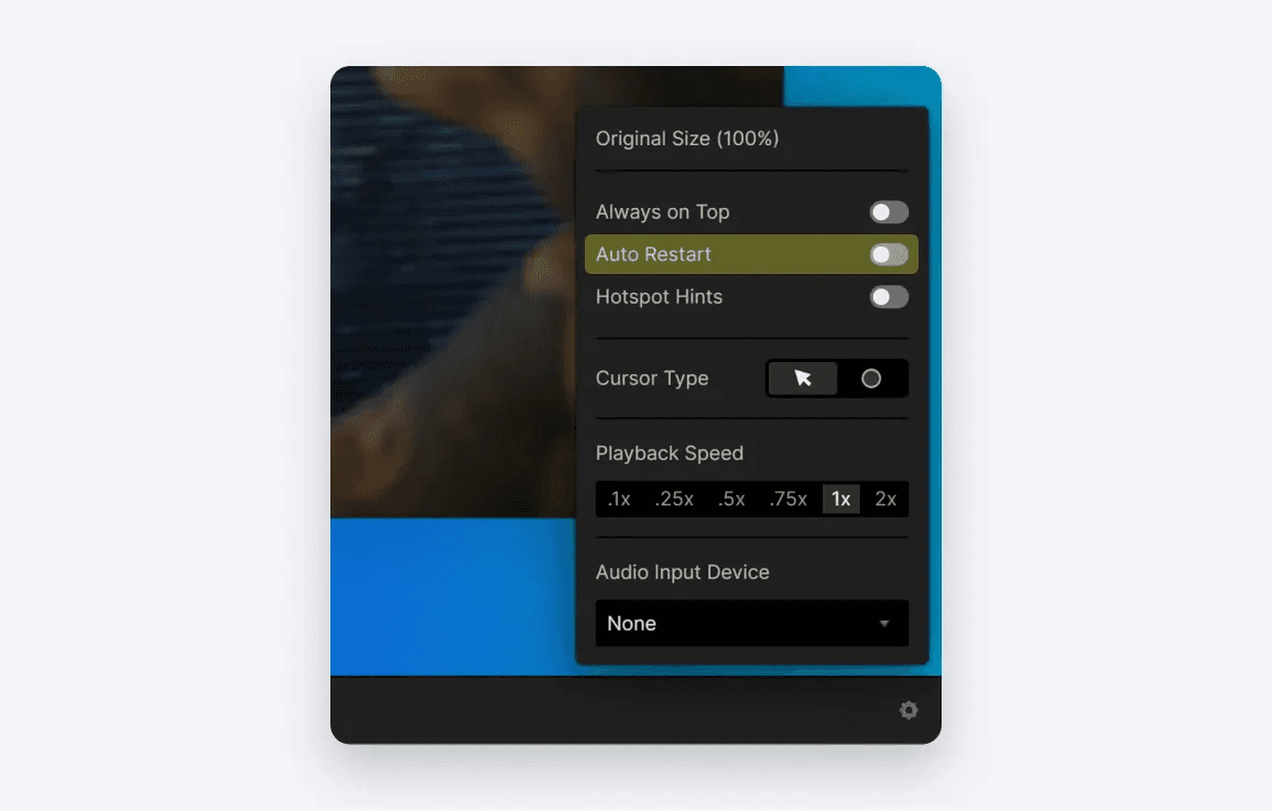 💡 팁! 프로토파이는 업데이트를 편리하게 확인할 수 있도록 수정할 때마다 미리보기 창을 새로 고칩니다. 하지만 미디어 레이어로 작업할 때는 자주 새로고침하고 사운드 재생이 반복될 수 있습니다. 더 통제된 환경을 선호하는 경우 미리보기 창 설정에서 자동 재시작 옵션을 비활성화할 수 있습니다.