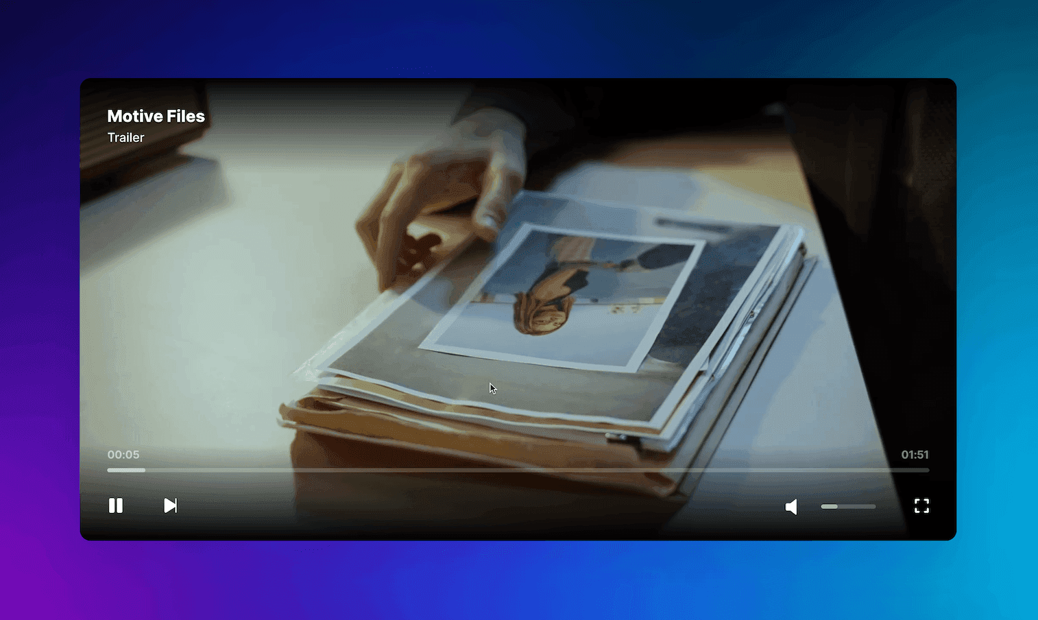 비디오 플레이어 위로 호버링하면 다양한 기능을 보여주는 오버레이가 트리거됩니다.