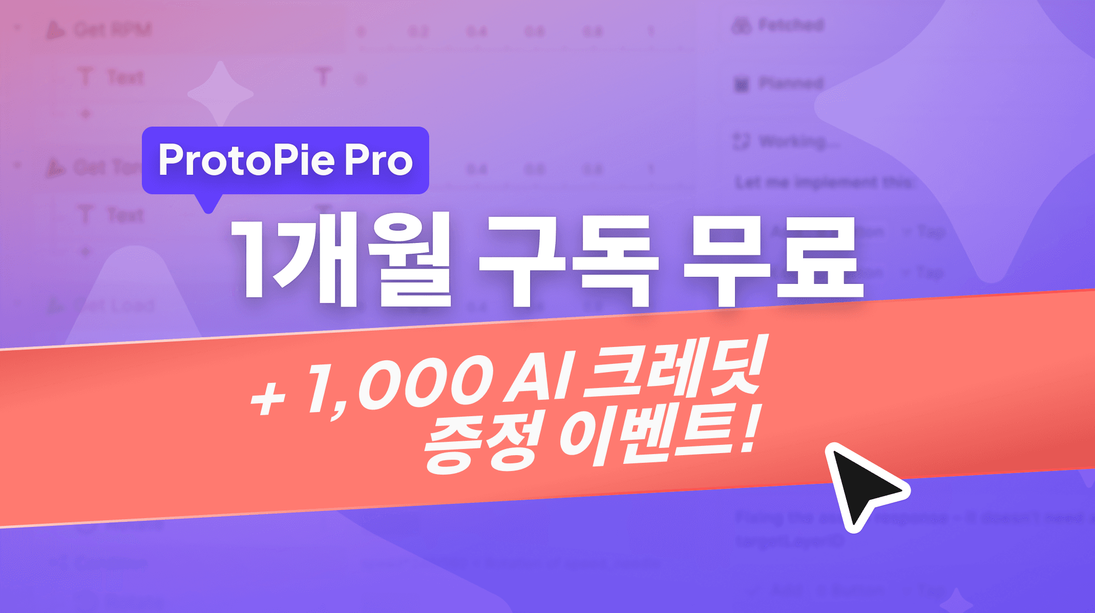 [수량 한정 쿠폰] ProtoPie Pro 1개월 무료 + 1,000 AI 크레딧 증정 이벤트
