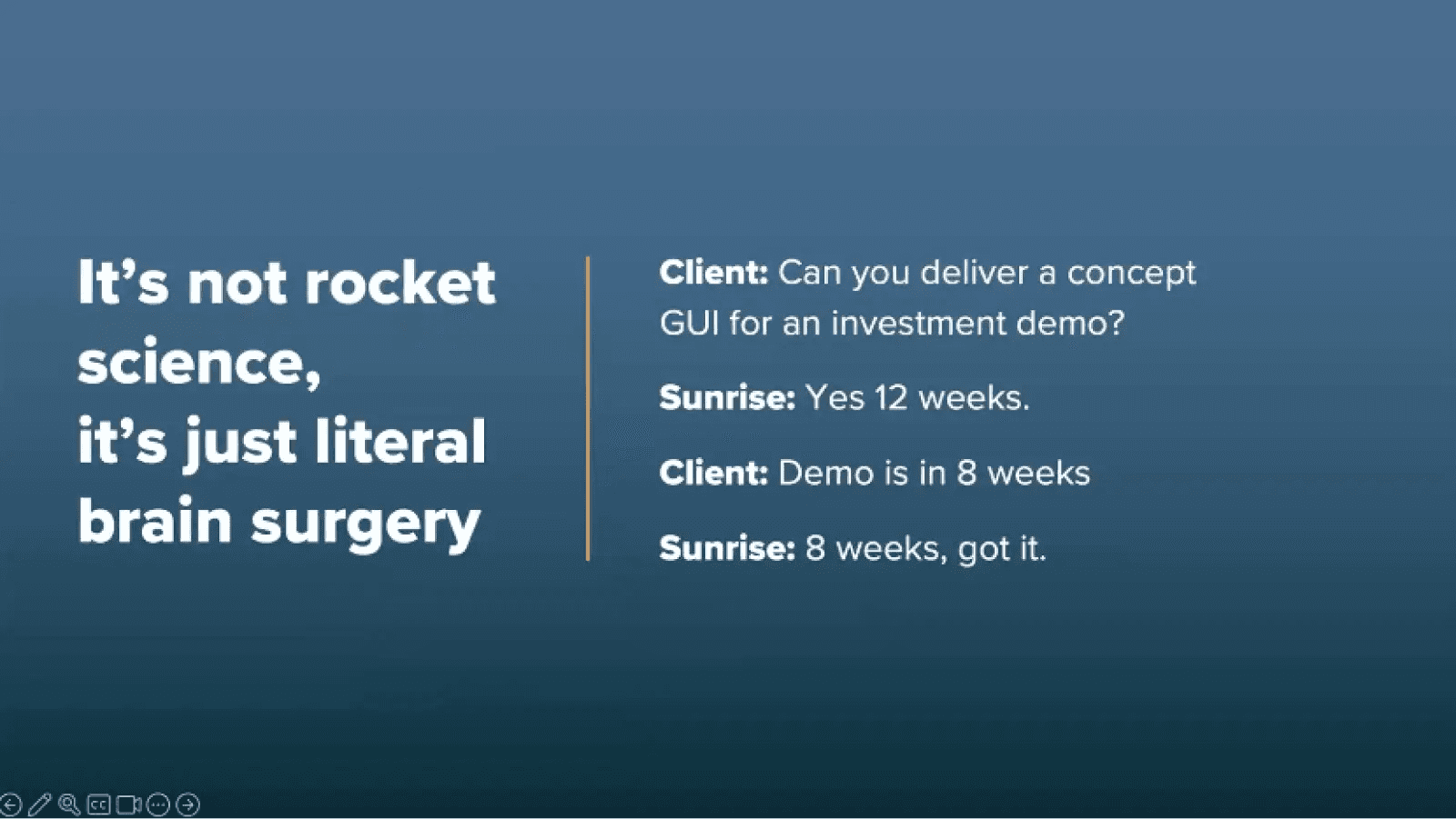 3. 기술 리스크 감소를 위한 반복 작업 참여: Sunrise Labs는 기능에 중점을 둔 1~2일의 신속한 반복 작업 프로세스를 권장합니다. 이를 통해 디자인 팀이 기능적인 핵심 위에 시각적 요소를 겹쳐 효율적인 협업을 촉진하고, 신뢰성과 사용자 경험을 향상시킬 수 있습니다.
