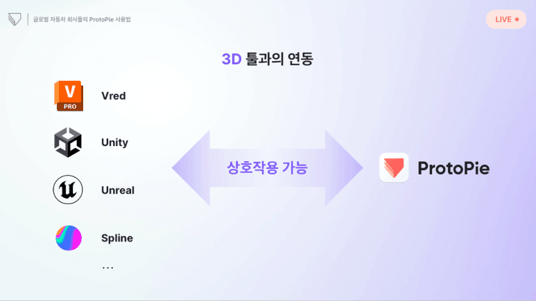 ProtoPie와 한국 총판 단군소프트가 준비한 해외 자동차 HMI 디자인 견학에 대한 웨비나가 진행되었습니다. 이번 웨비나에서는 ProtoPie Connect의 역할과 기능, 그리고 자동차 HMI 디자인에서의 활용 사례 등에 대해 소개하고 있습니다. ProtoPie Connect는 디자인 소스를 활용하여 모션과 인터랙션을 추가하고 실제 제품과 똑같이 사용해보고 경험할 수 있도록 프로토타이핑을 제작할 수 있는 툴입니다. 이를 통해 자동차 HMI 디자인에서 다양한 인터랙션을 구현하고 테스트 할 수 있습니다. 또한, ProtoPie Connect를 이용하여 외부 데이터와 상호작용하거나 하드웨어와 통합할 수 있습니다. 이번 웨비나에서는 ProtoPie Connect의 기능과 사용법, 그리고 실제 자동차 회사에서의 사용 사례들을 소개하고 있습니다. 이를 통해 자동차 HMI 디자인에 대한 이해도를 높일 수 있습니다.