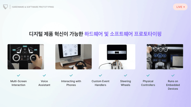 과거에는 디자인과 개발이 순차적으로 이루어지던 반면, 현재는 디자인 팀이 초기 단계부터 참여하여 프로토타입을 실시간으로 확인하고 수정할 수 있습니다. 이를 위해 디자인 팀은 실제 차량과 동일한 환경을 구성하여 프로토타입을 테스트하고, 개발자와의 협업을 통해 실제 차량의 데이터와 상호작용하는 인터랙션을 구현할 수 있습니다.